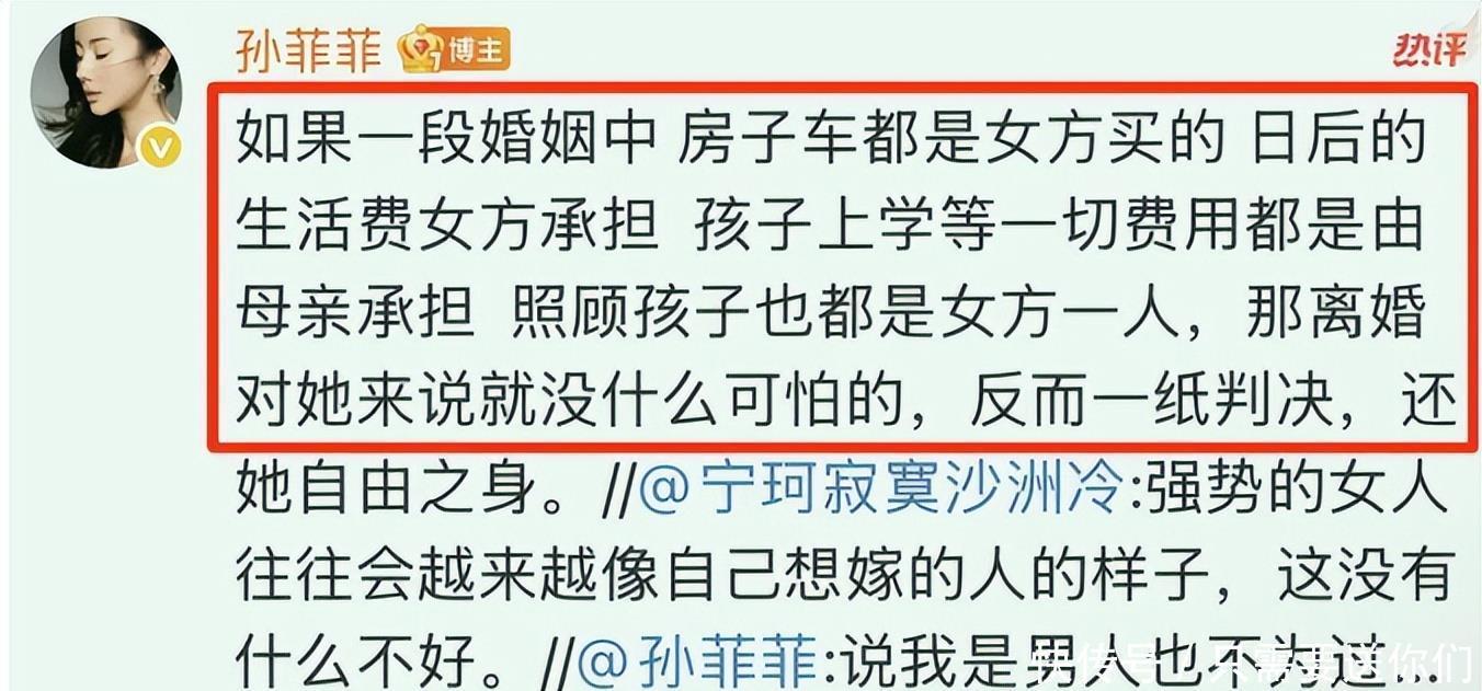 她形容自己在婚内如同 “丧偶” 一般,生活的大部分支出都由自己一力承担。这对于一位在娱乐圈拼搏、本就背负着巨大工作压力的女演员来说,还要独自扛起家庭的经济重担,实在令人心疼。而更令人气愤的是,她还要长期遭受前夫的冷暴力和无端猜忌。前夫竟怀疑她与各种男性有染,甚至质疑孩子的血缘关系,经常说孩子长得一点都不像他。面对如此荒谬的冤枉,孙菲菲展现出了超乎常人的冷静,她淡淡地说不在意暂时的冤枉,并主动提议去做亲子鉴定。然而,当鉴定结果显示有 99.99% 的可能性支持亲子关系时,前夫竟还揪着那 0.001% 的统计学可能性,坚称孩子不是自己的。这种无理取闹的行为,无疑让孙菲菲在情感上遭受了沉重的打击。由此可见,她的前夫不仅缺乏对妻子最基本的信任,更是在精神上对她进行了持续的折磨。