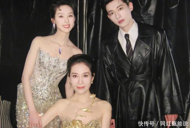 陈都灵和温峥嵘、辛云来合照也是大气又温婉了,温峥嵘显得优雅,又诗意,而辛云来作为一个男神呢,也是黑色的皮衣,白色的衬衫,格纹的领带,她跟林允一起合照,还做出了比心造型,