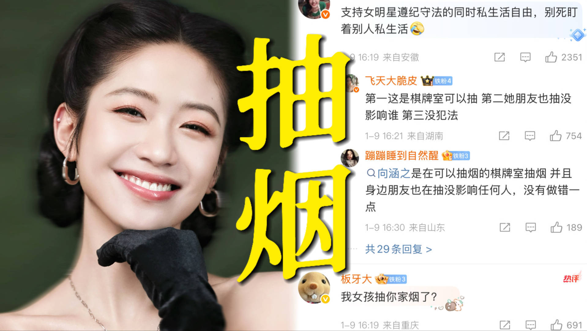 争议很快从"抽烟行为"转向"隐私边界"。有法律博主指出,拍摄者若未经允许在私密包厢内安装摄像头,可能涉嫌侵犯公民个人信息。但更多人认为,作为公众人物应意识到棋牌室属于半公共空间,而且向涵之2023年接受采访时曾倡导"青少年健康生活方式",如今行为与形象形成强烈反差。她当时还说过"艺人的每个举动都可能成为粉丝模仿的对象"。