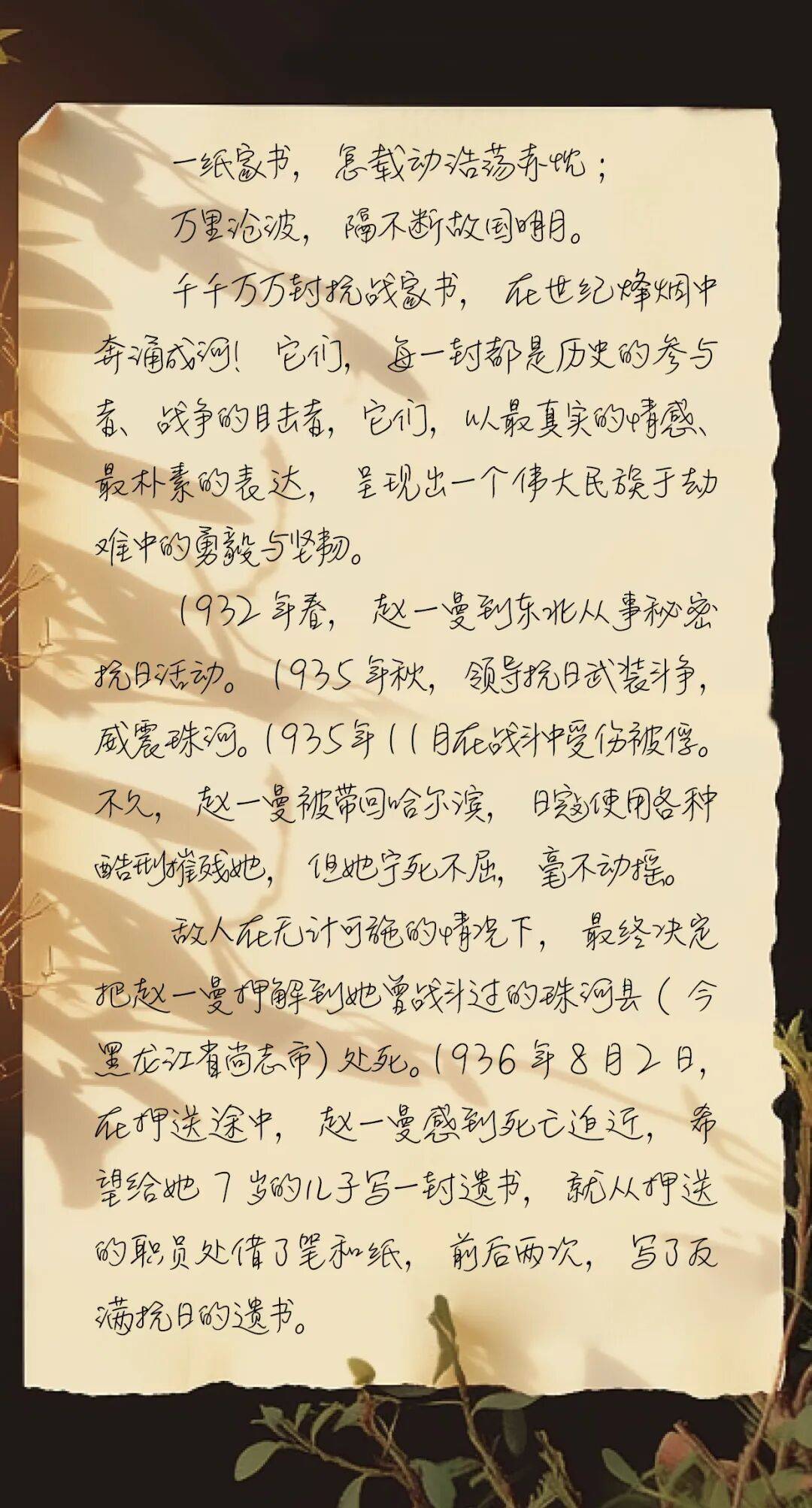 赵一曼临刑前写给儿子的信:14年后才被打开,信中一字值千金!